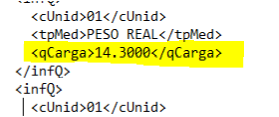 Realizando o teste com um CTe, onde a descrição do peso no XML é: ‘PESO REAL’.